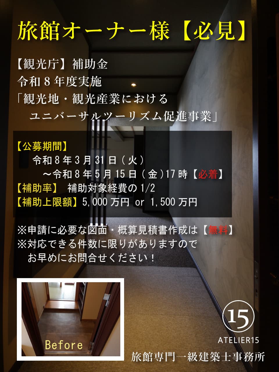 ✅ 補助金で旅館改修事例多数あり