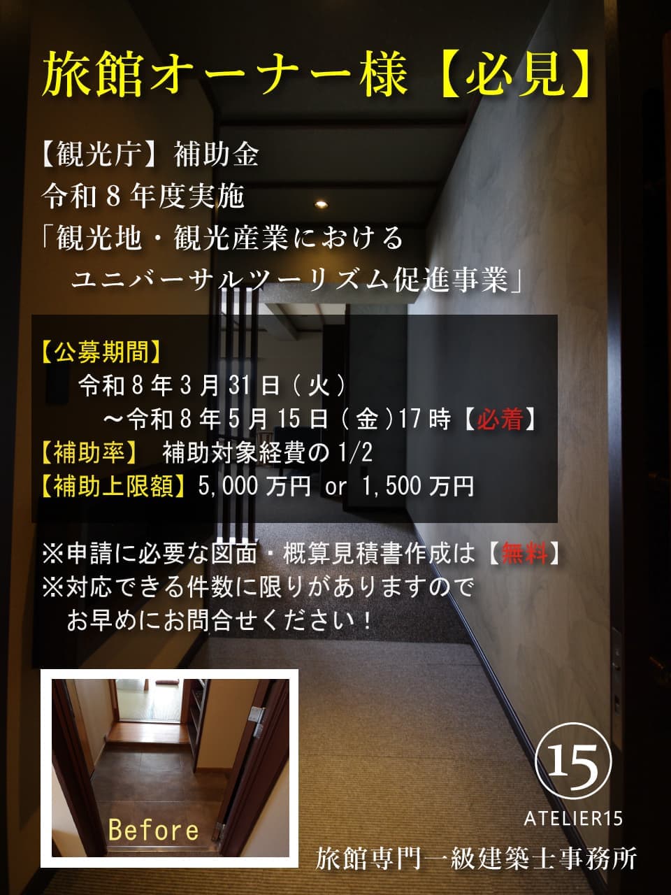 ✅旅館専門の一級建築士が直接対応